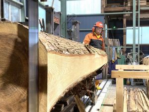 タチキカラの杉野さんは、愛知県豊田市を拠点に、樫とナラといった広葉樹を伐採・搬出・運搬・製炭し、スギやヒノキといた針葉樹を伐採・搬出・運搬・製材まで一貫して行う事業を営んでいらっしゃいます。